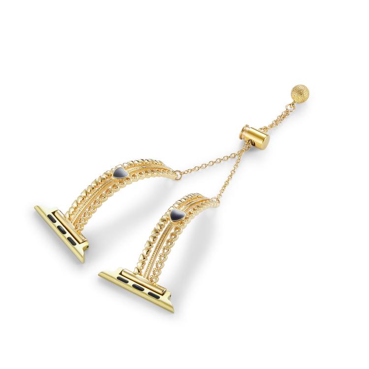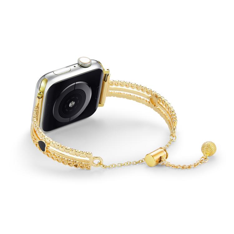 Correa de aleación de zinc con diseño de piedra blanca y amor para Apple Watch de 42 mm, 41 mm, 40 mm y 38 mm (dorada)