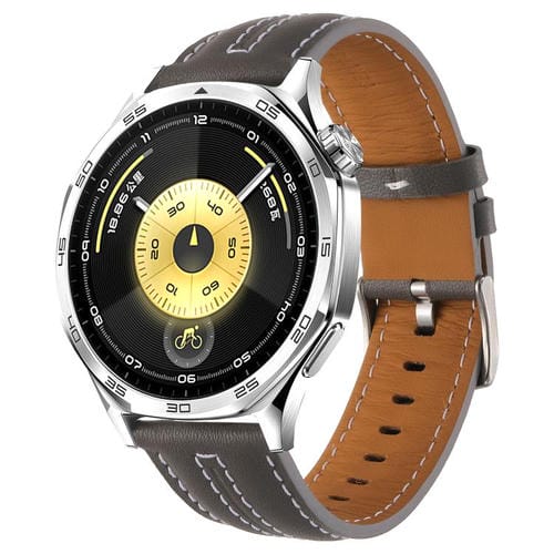 Correa de cuero con hebilla plateada para Huawei Watch GT 6 de 46 mm (gris)