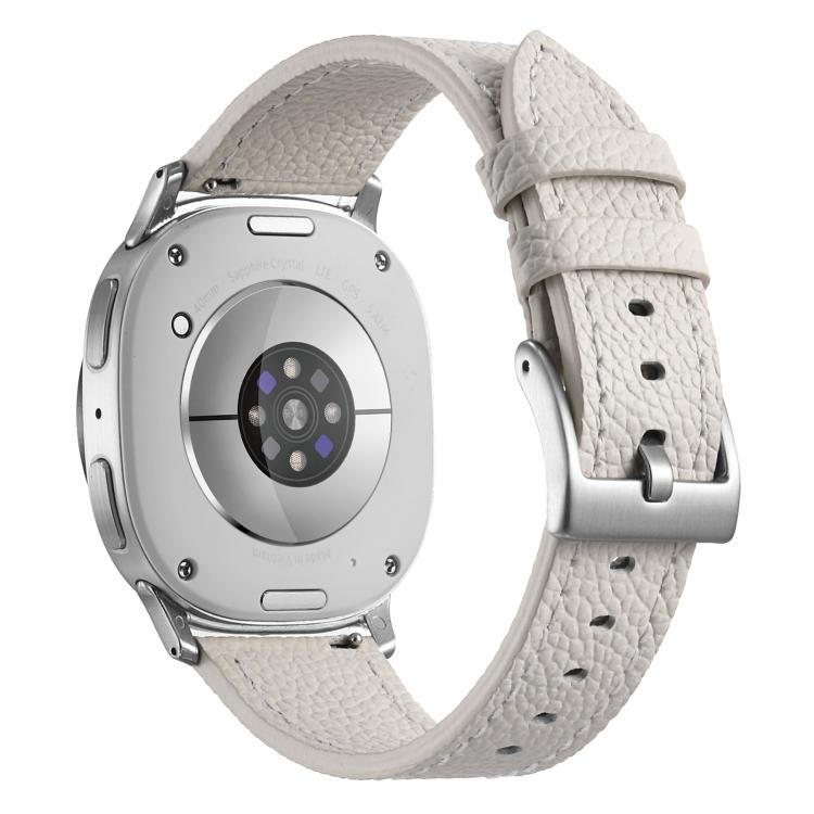 Correa de cuero con textura de lichi de doble cara para Samsung Galaxy Watch8/Watch8 Classic (blanca)