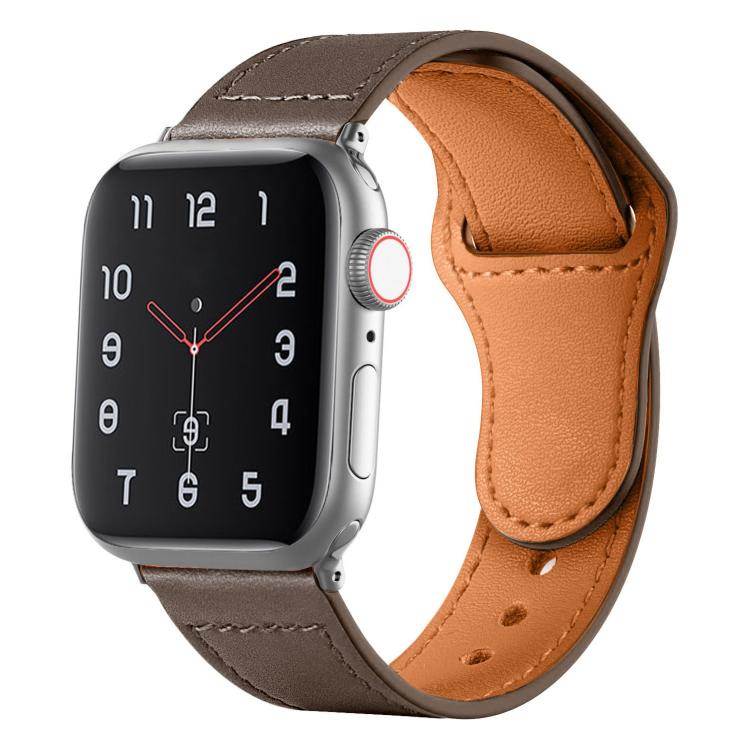 Correa de cuero genuino con hebilla inversa para Apple Watch de 46 mm, 49 mm, 45 mm y 44 mm (color café)