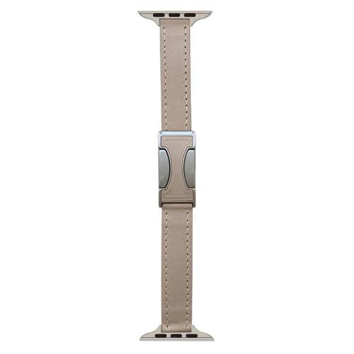 Correa de cuero genuino lisa de 14 mm con hebilla magnética para Apple Watch de 42 mm, 41 mm, 40 mm y 38 mm (color albaricoque).