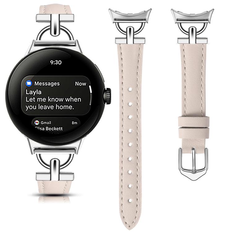 Correa de cuero metálica en forma de D de 41 mm para Google Pixel Watch 4 / 3 / 2 / 1 (rosa claro)