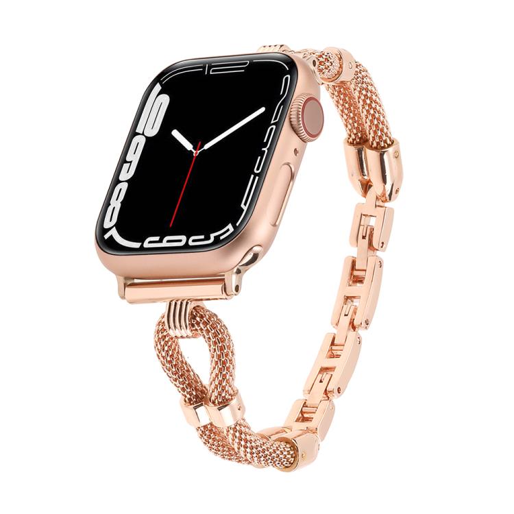 Correa de metal con cadena de cobre para Apple Watch de 42 mm, 41 mm, 40 mm y 38 mm (oro rosa)