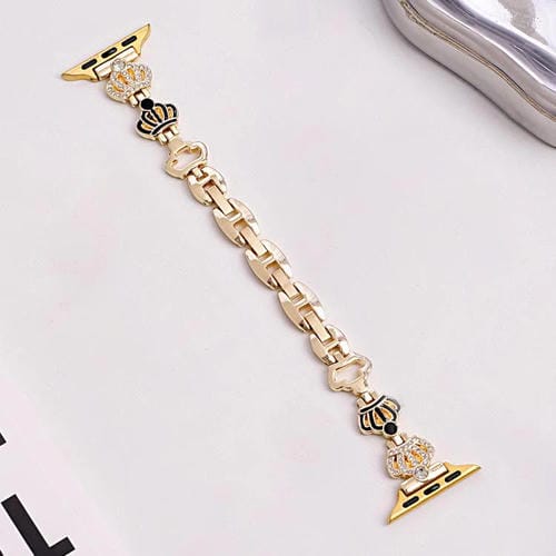Correa de metal con diamantes y cadena de corona para Apple Watch de 38, 40, 41 y S11 de 42 mm (dorada)