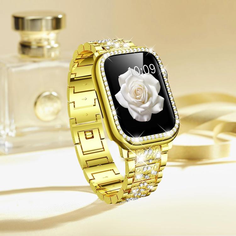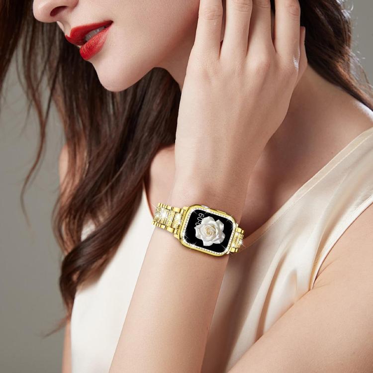 Correa de metal con diamantes y estuche para Apple Watch Series 45 mm xDfind (dorada)