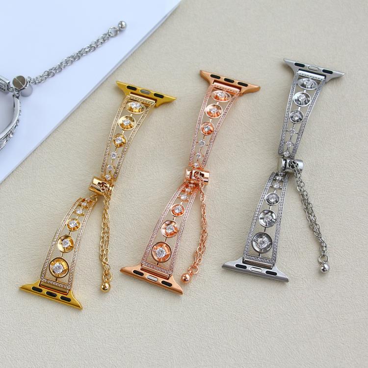 Correa de metal de circonio platino con estrella para Apple Watch de 46 mm, 49 mm, 45 mm y 44 mm (dorada)