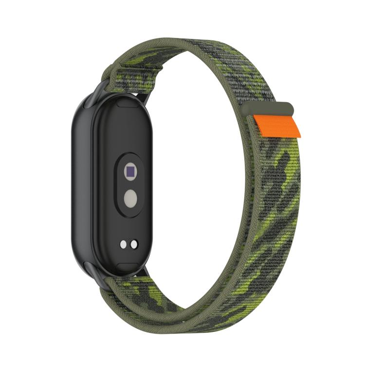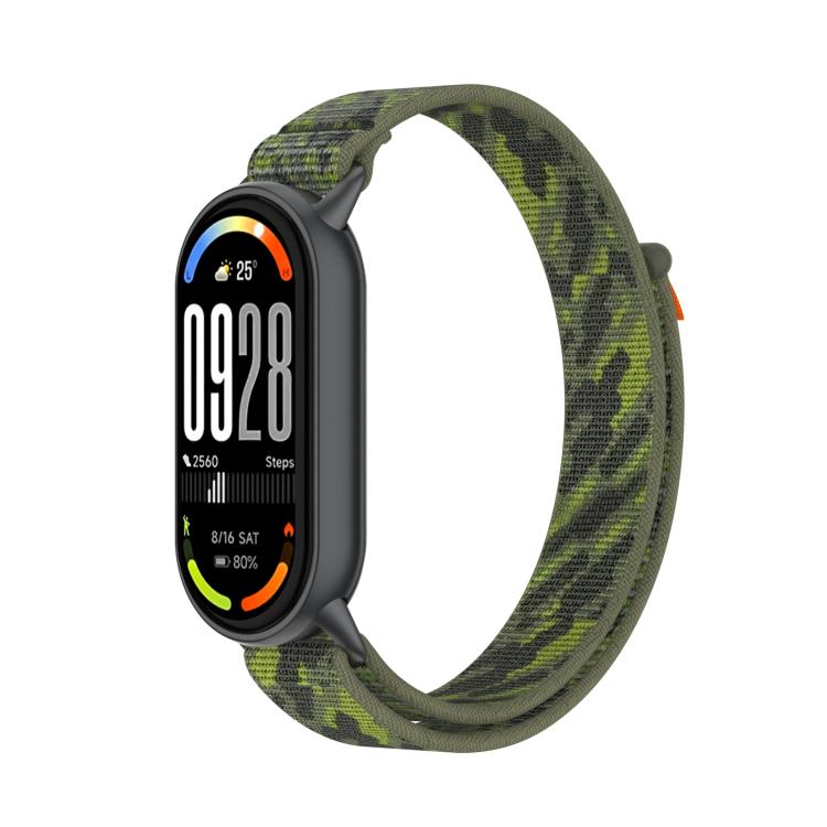 Correa de nailon con cierre de velcro para Xiaomi Smart Band 10/9/8 (verde camuflaje)