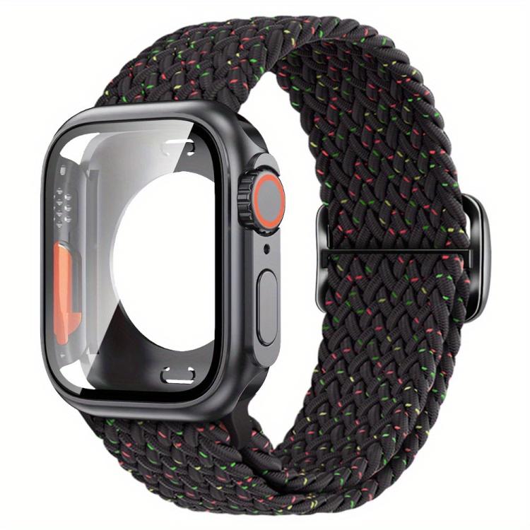 Correa de nailon con hebilla de escalera para Apple Watch Series 40 mm, con funda de PC y película Ultra de 49 mm (negro Starlight)