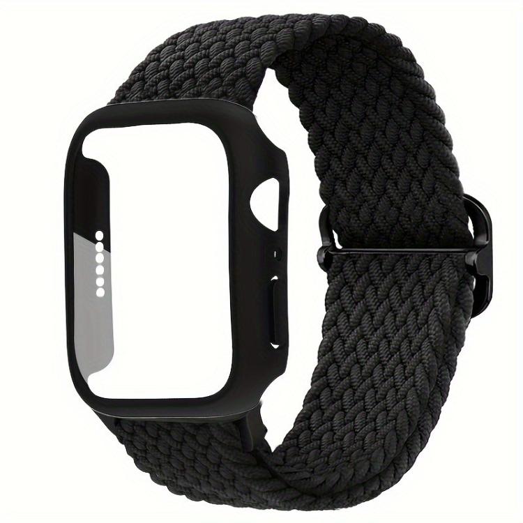 Correa de nailon con hebilla de escalera para Apple Watch Series 41 mm con cubierta de policarbonato esmerilado (negro)