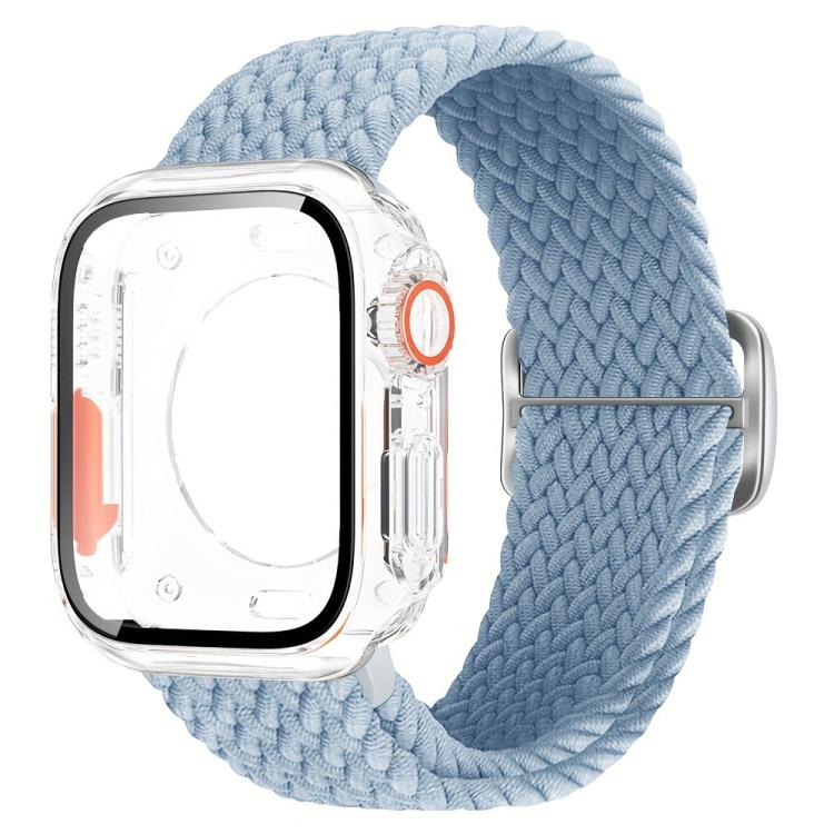 Correa de nailon con hebilla de escalera para Apple Watch Series 41 mm, con funda de PC con película Ultra de 49 mm (azul claro)
