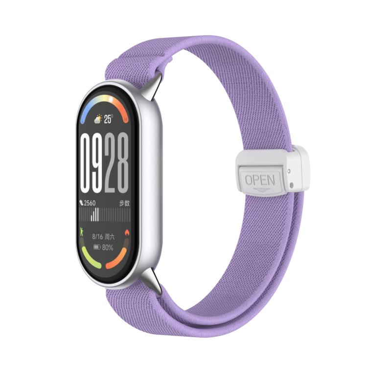 Correa de nailon elástica con hebilla magnética de plástico y cabeza de metal para Xiaomi Smart Band 10/9/8 (color lavanda)