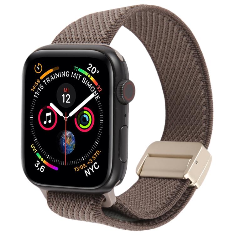 Correa de nailon elástico bicolor con hebilla magnética para Apple Watch de 42 mm, 41 mm, 40 mm y 38 mm (marrón oscuro y marrón claro).