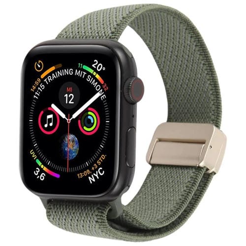 Correa de nailon elástico bicolor con hebilla magnética para Apple Watch de 46 mm, 49 mm, 45 mm y 44 mm (verde y gris).