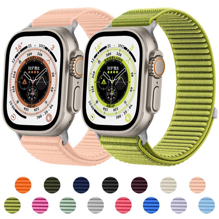 Correa de nailon tejido con cierre de velcro y interfaz metálica para Apple Watch de 46 mm, 49 mm, 45 mm y 44 mm (color ciruela)