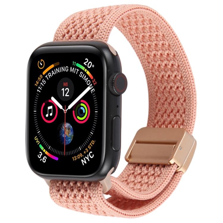 Correa de nailon transpirable con hebilla magnética para Apple Watch de 42 mm, 41 mm, 40 mm y 38 mm (rosa opaco)