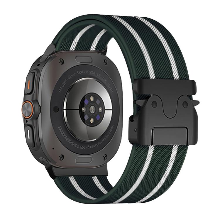 Correa de nailon trenzada elástica con hebilla de paracaídas para Samsung Galaxy Watch Ultra de 47 mm (verde oscuro y blanco)