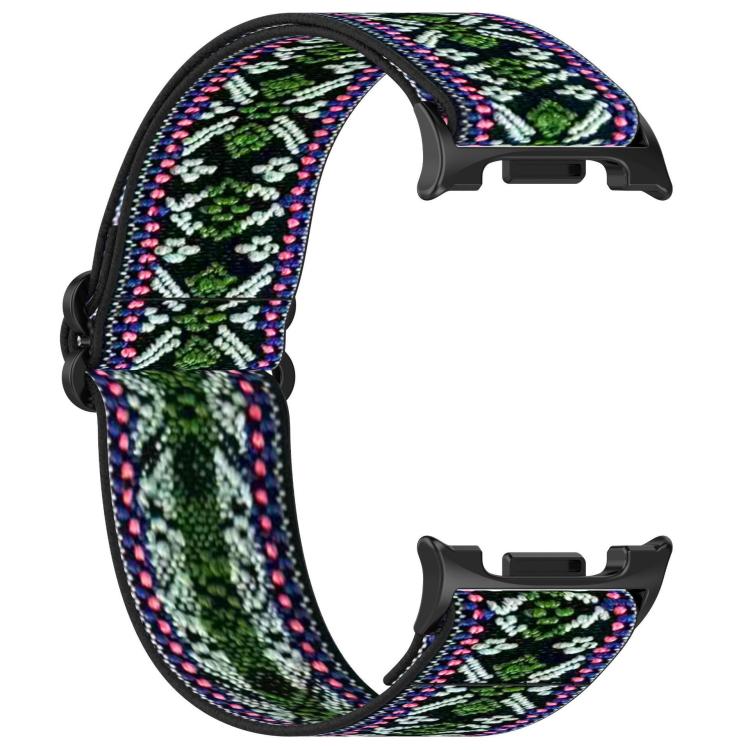Correa de nailon trenzado elástico de estilo étnico clásico para Samsung Galaxy Watch8/Watch8 (verde étnico y morado)