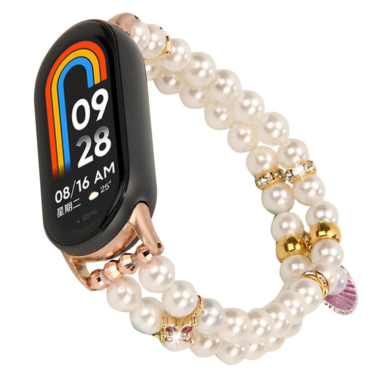 Correa de reloj con cadena de cuentas de doble fila para Xiaomi Smart Band 10/9/8 (blanco perla)