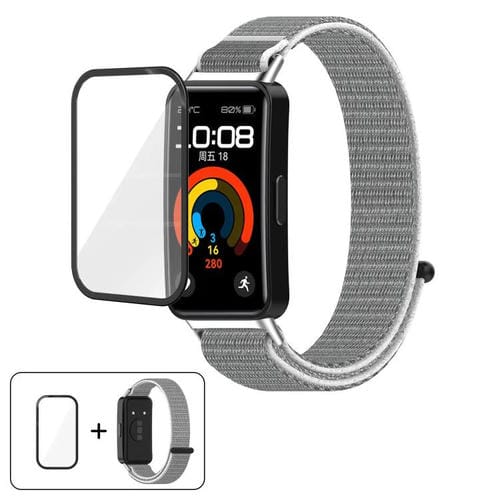 Correa de reloj con cierre de velcro de nailon y película curva 3D para Huawei Band 8/8 NFC (color concha marina)