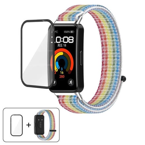 Correa de reloj con cierre de velcro de nailon y película curva 3D para Huawei Band 9/9 NFC (arcoíris)