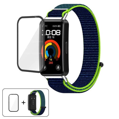 Correa de reloj con cierre de velcro de nailon y película curva 3D para Huawei Band 9/9 NFC (color lima)