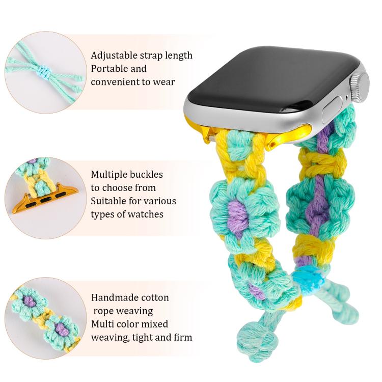 Correa de reloj con cordón de cáñamo y flores tejidas para Apple Watch de 46 mm, 49 mm, 45 mm y 44 mm (verde azulado)