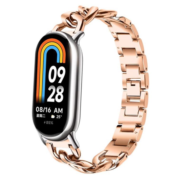 Correa de reloj de acero inoxidable con cadena vaquera de una sola fila xDfind para Xiaomi Smart Band 10/9/8 (oro rosa)