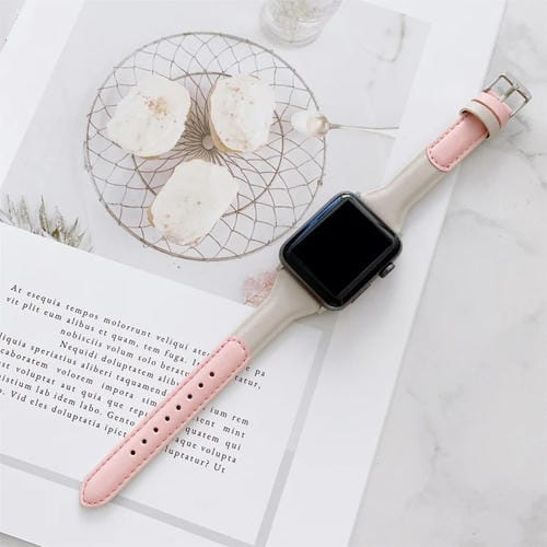Correa de Reloj de Cuero Apple Watch Ultra 49mm Series 8 7 45mm SE 44mm 42mm (Rosa Blanco)