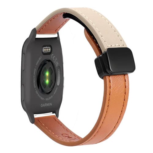 Correa de Reloj Cuero Microfibra 20mm para Garmin Venu Sq (Naranja Aima + Albaricoque Crema)