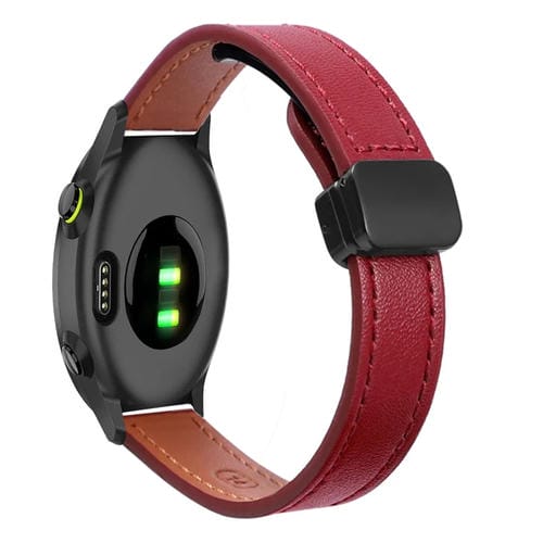 Correa de Reloj de Cuero Microfibra 20mm con Hebilla Magnética para Garmin Forerunner 55 (Rojo Vino)