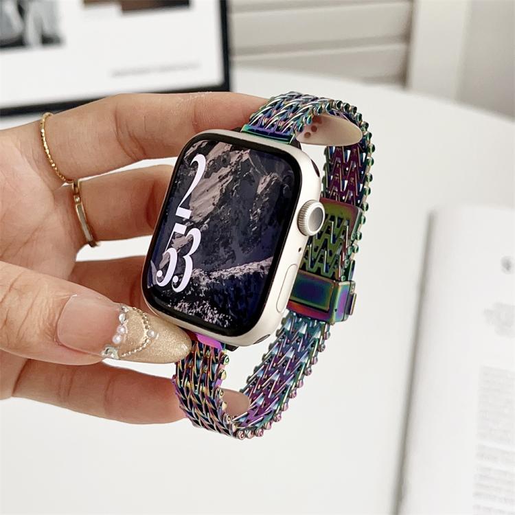 Correa de reloj de malla metálica de acero delgada con cierre magnético para Apple Watch de 42 mm / 41 mm / 40 mm / 38 mm (Colorida)