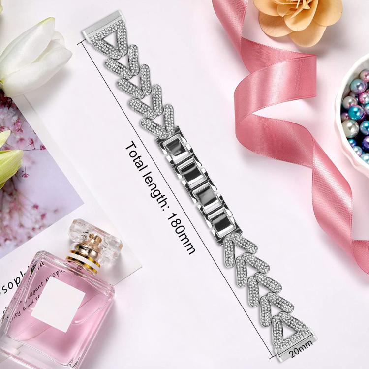 Correa de reloj de metal con diamantes pequeños de 20 mm xDfind para Fitbit Versa 4/3/Sense/Sense 2 (plateada)