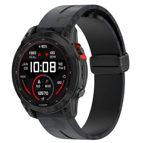 Correa de Reloj silicona estampada con hebilla magnética para Garmin Fenix 7S (Gris Camuflaje)