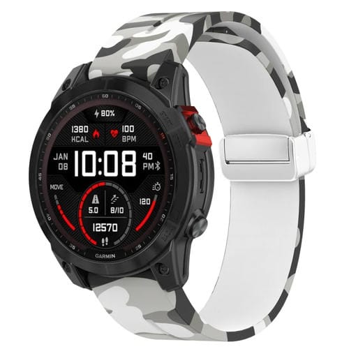 Correa de Reloj Silicona Garmin Fenix 7S Estampado Color Hebilla Plateada Plegable Magnética (Blanco Camuflaje)