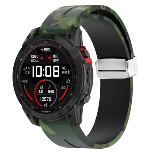 Correa de Reloj Silicona Garmin Fenix 7S con Hebilla Plegable Magnética (Verde Camuflaje)