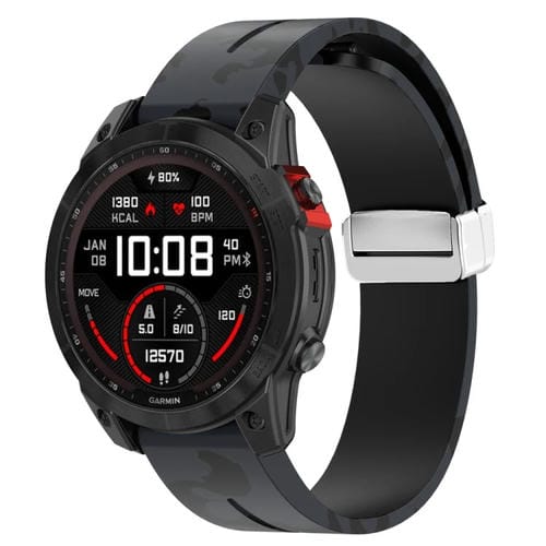 Correa de Reloj Silicona Garmin Fenix 7X Hebilla Plegable Magnética (Gris Camuflaje)