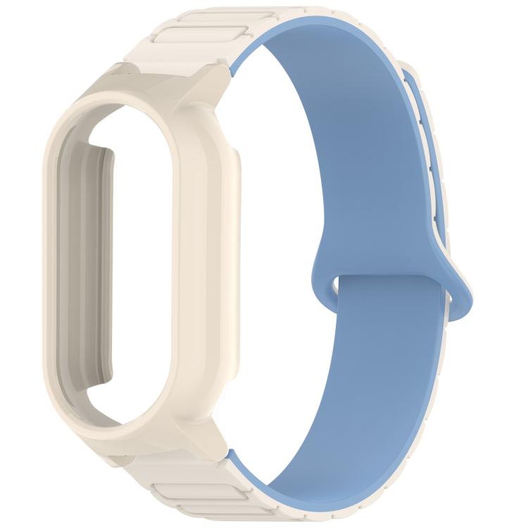 Correa de reloj de silicona magnética con forma de I para Xiaomi Mi Band 8/8 NFC PC Watch Frame (blanco + azul blanco)