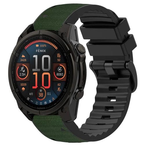 Correa de reloj Garmin de 26 mm, de silicona, híbrida, de cuero y nailon, de liberación rápida (nailon verde militar y silicona)