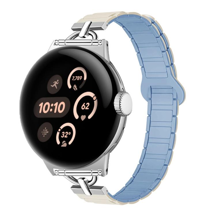 Correa de reloj magnética de silicona con tres cuentas en forma de D de 45 mm para Google Pixel Watch 4/3 (Blanco/Azul Niebla)