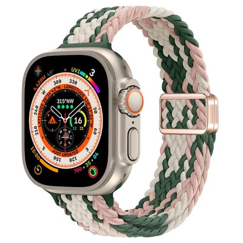 Correa de Reloj Trenzada Nailon con Hebilla Magnética para Apple Watch Ultra 49mm (Estrella Rosada con Cactus)