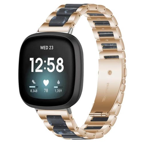 Correa de resina metálica con tres cuentas para Fitbit Versa 4/3/Sense 2/Sense xDfind (oro rosa y azul)