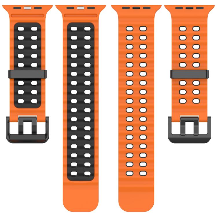 Correa de silicona bicolor con doble fila de agujeros para Apple Watch de 46 mm, 49 mm, 45 mm y 44 mm (naranja y negro)