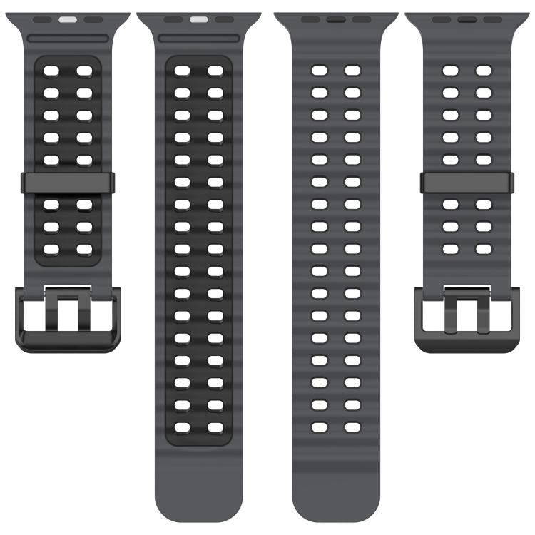 Correa de silicona bicolor con doble fila de agujeros para Apple Watch de 46 mm, 49 mm, 45 mm y 44 mm (negro)