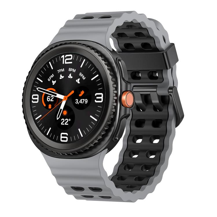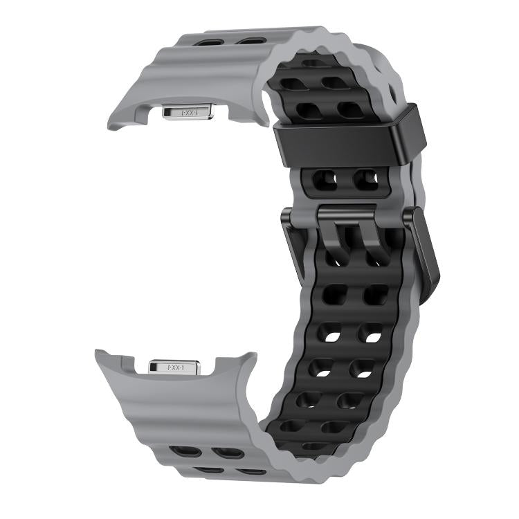 Correa de silicona bicolor con hebilla de liberación rápida para Samsung Galaxy Watch8/Watch8 Classic Ocean Style (gris y negro)