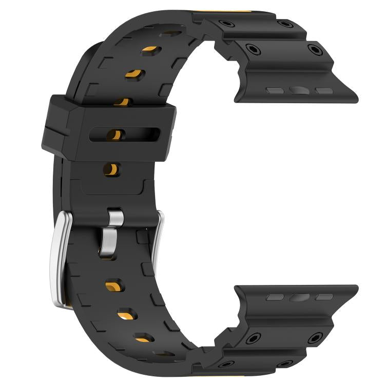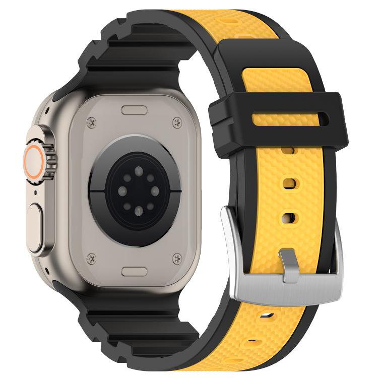 Correa de silicona bicolor con textura de diamante para Apple Watch de 46 mm, 49 mm, 45 mm y 44 mm (negro y amarillo)