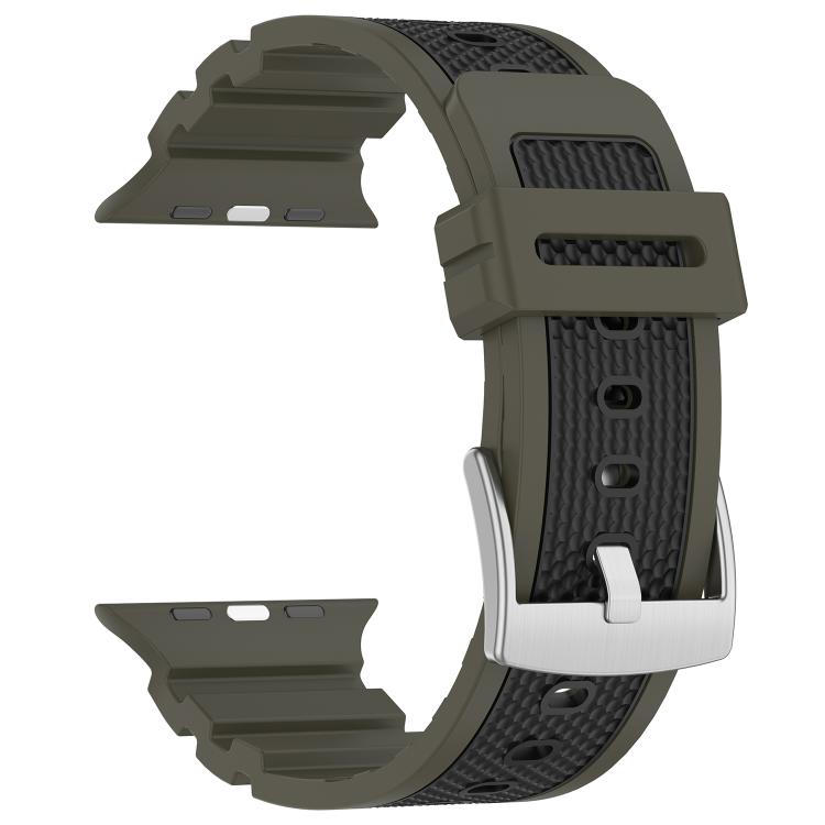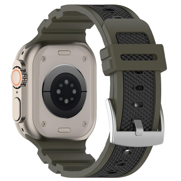 Correa de silicona bicolor con textura de diamante para Apple Watch de 46 mm, 49 mm, 45 mm y 44 mm (verde militar y negro).