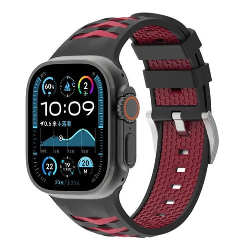 Correa de silicona bicolor con textura de neumático para Apple Watch de 42 mm, 41 mm, 40 mm y 38 mm (negro y rojo intenso)