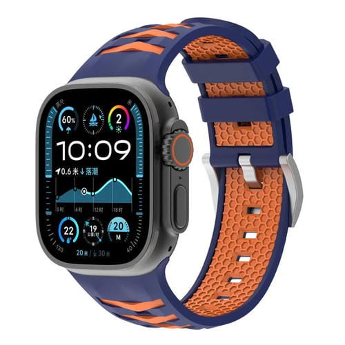 Correa de silicona bicolor con textura de neumático para Apple Watch de 46 mm, 49 mm, 45 mm y 44 mm (azul medianoche y naranja)