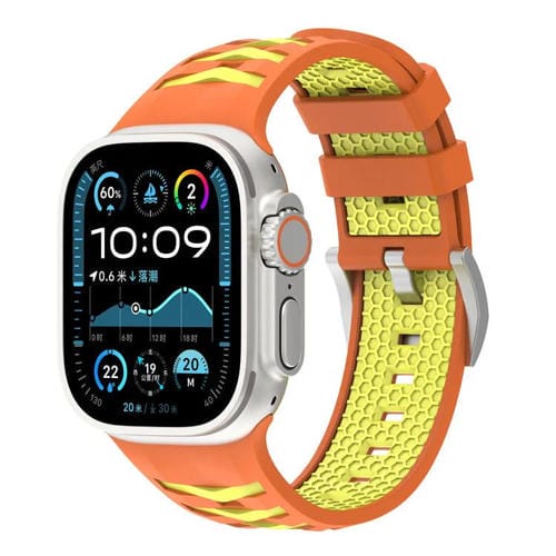 Correa de silicona bicolor con textura de neumático para Apple Watch de 46 mm, 49 mm, 45 mm y 44 mm (naranja y amarillo)