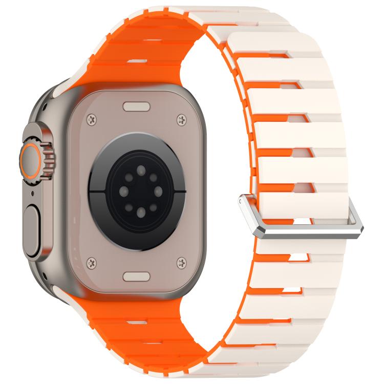 Correa de silicona bicolor magnética estilo melódica para Apple Watch de 46 mm / 49 mm / 45 mm / 44 mm (naranja estelar).